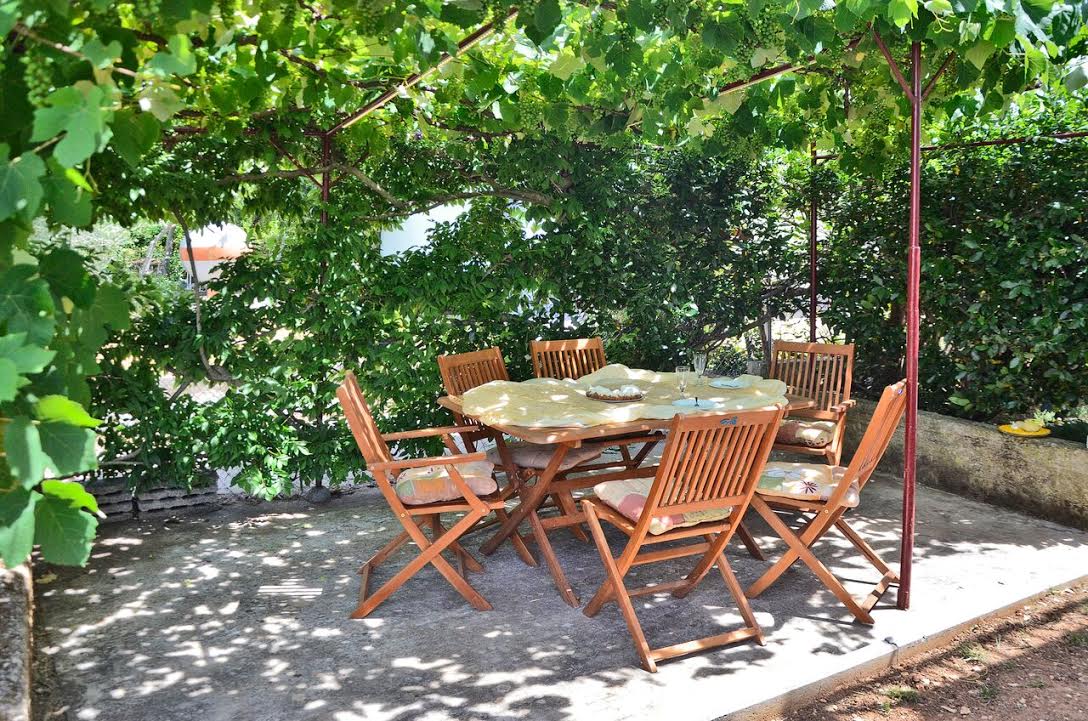- Tisch und Stühle auf der Terrasse