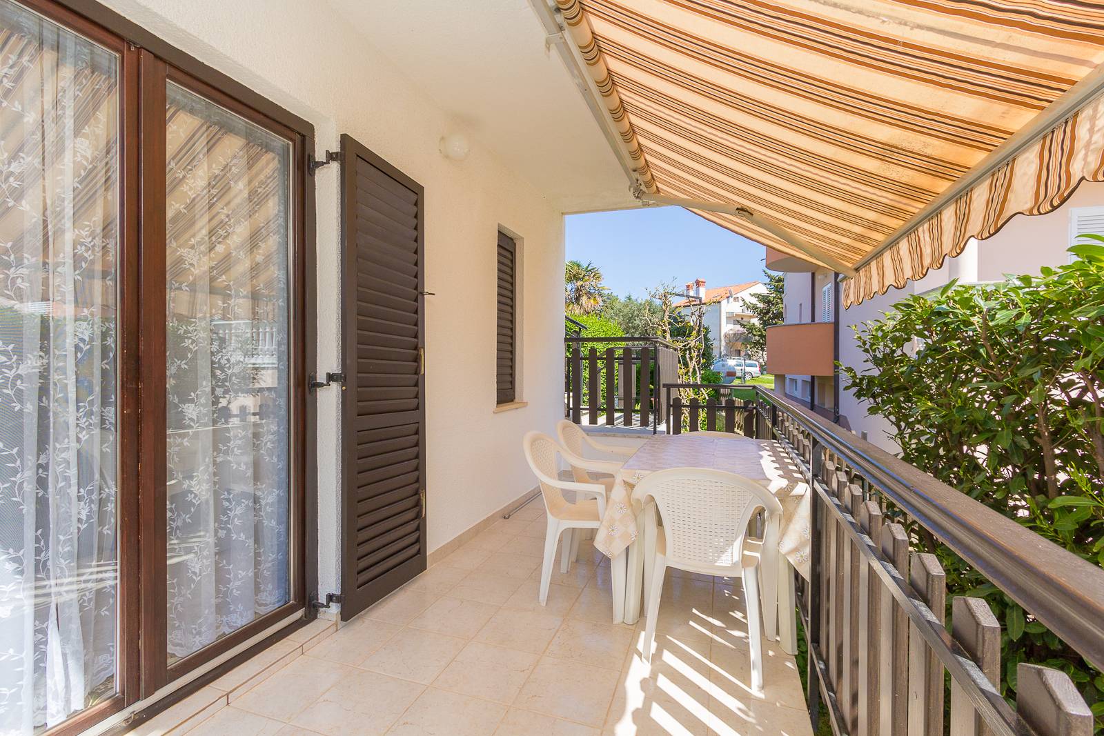 - Tisch und Stühle auf dem Balkon