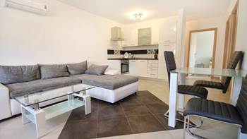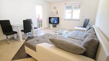 Auf der ersten Etage eines privaten Wohnhauses bieten wir eine luxuriös eingerichtete Ferienwohnung mit zwei Zimmern, Wohnzimmer, komplett ausgestatteter Küche und einem Balkon mit Blick auf die Nachbarhäuser und die 0gepflegten Rasen. Das Wohnzimmer ist klimatisiert, geräumig und, dank der großen Glastür, die zum Balkon führt, und den hohen Fenstern, gut beleuchtet. Den Gästen dieser Ferienwohnung stehen zwei Parkplätze zur Verfügung.