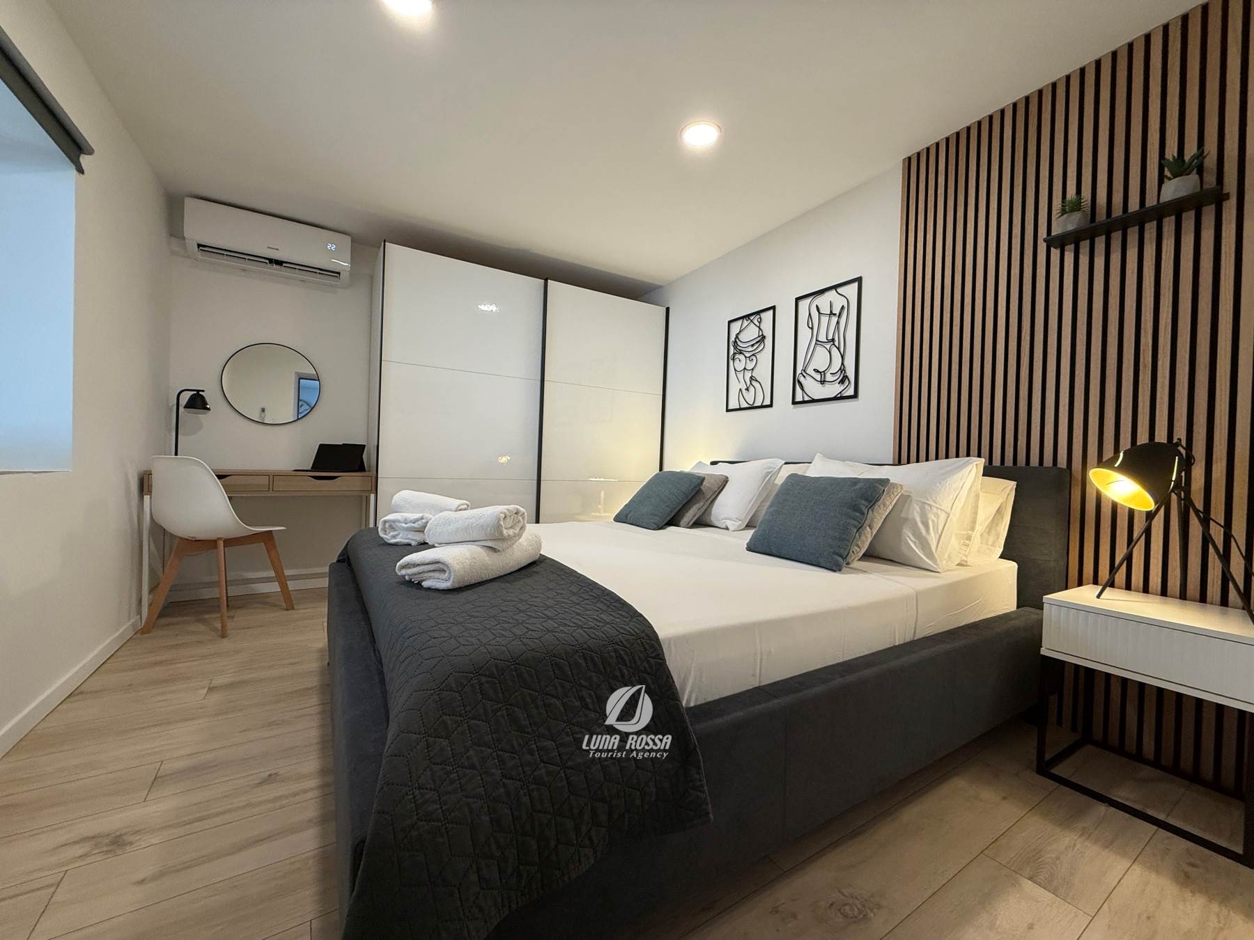 Diese modernen Apartments befinden sich in Pula in einem Teil der Stadt in der Nähe des Meeres und haben gepflegte öffentliche Strände. In einer beneidenswerten Lage am Rande einer städtischen grünen Oase gelegen, ist dieses Ende des Reihenhauses die ideale Wahl, wenn es um hochwertige Ferien geht - das Interieur ist makellos dekoriert und komfortabel, mit allen notwendigen Annehmlichkeiten. Ein gemeinsamer Salzwasserpool im Freien wird Ihren Urlaub in diesen charmanten Apartments weiter ergänzen.