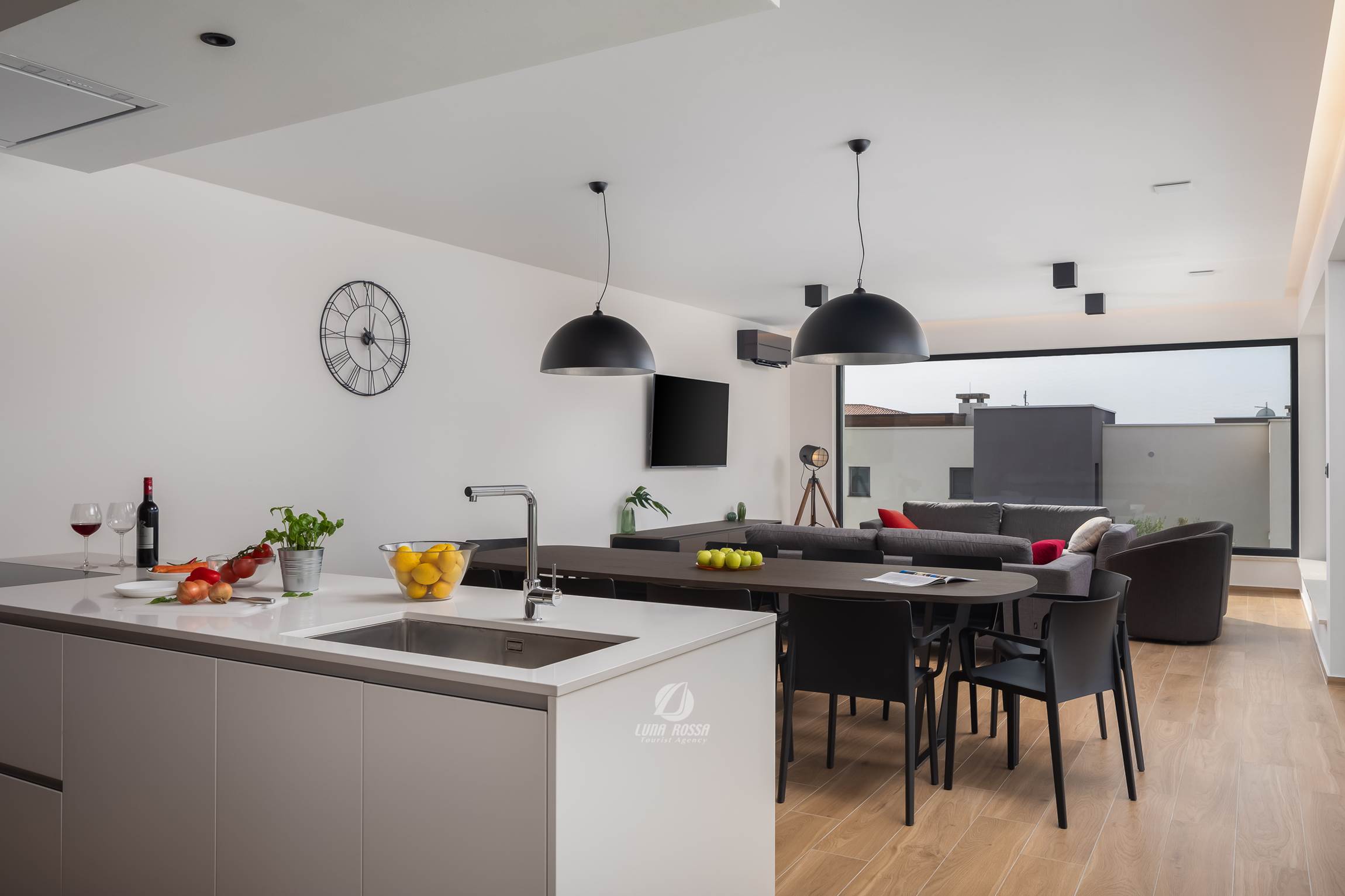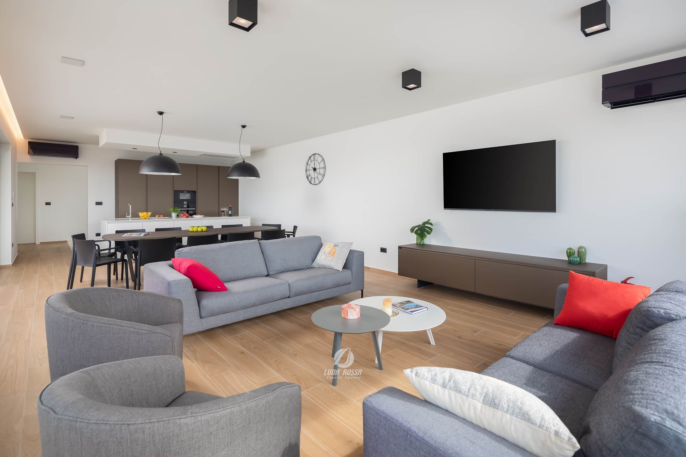 - Wohnzimmer, Esszimmer und Küche in einem Raum