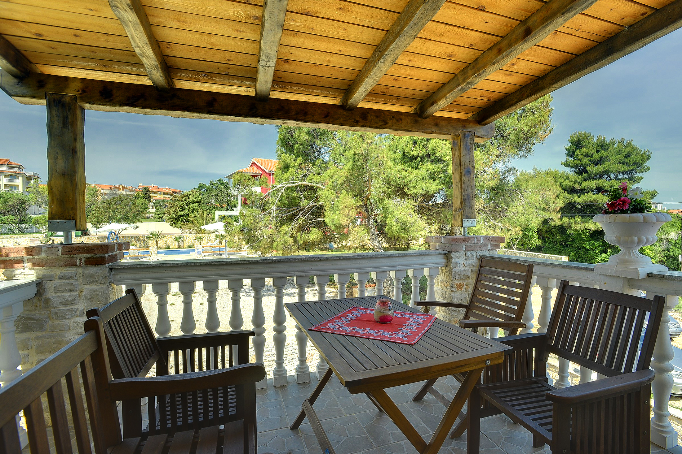 - tables and chairs on the balcony