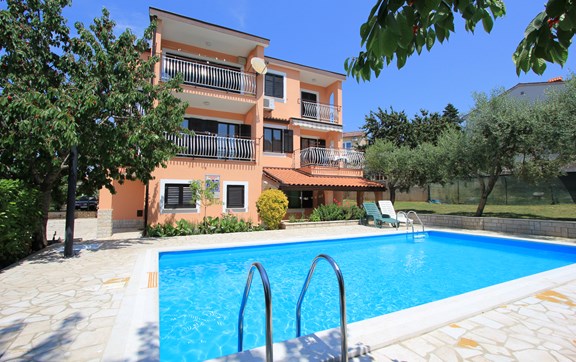 Not far from the city center, you'll find the perfect place for a holiday in this beautiful family home with five apartments in Pula. All guests can use the common garden, sun terrace with a large central swimming pool and barbecue. The apartments are located on the ground floor, first and second floor, and are well equipped - the lounges are equipped with air conditioning, kitchens contain everything you need to prepare and serve the food, while the balconies are furnished, and within the property are assured five parking places. This beautiful home is surrounded by a landscaped garden.