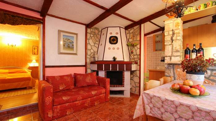 House Ondina in Medulin is surrounded with greenery and is suitable for 2 persons and a pet also. It has a terrace with seaview.