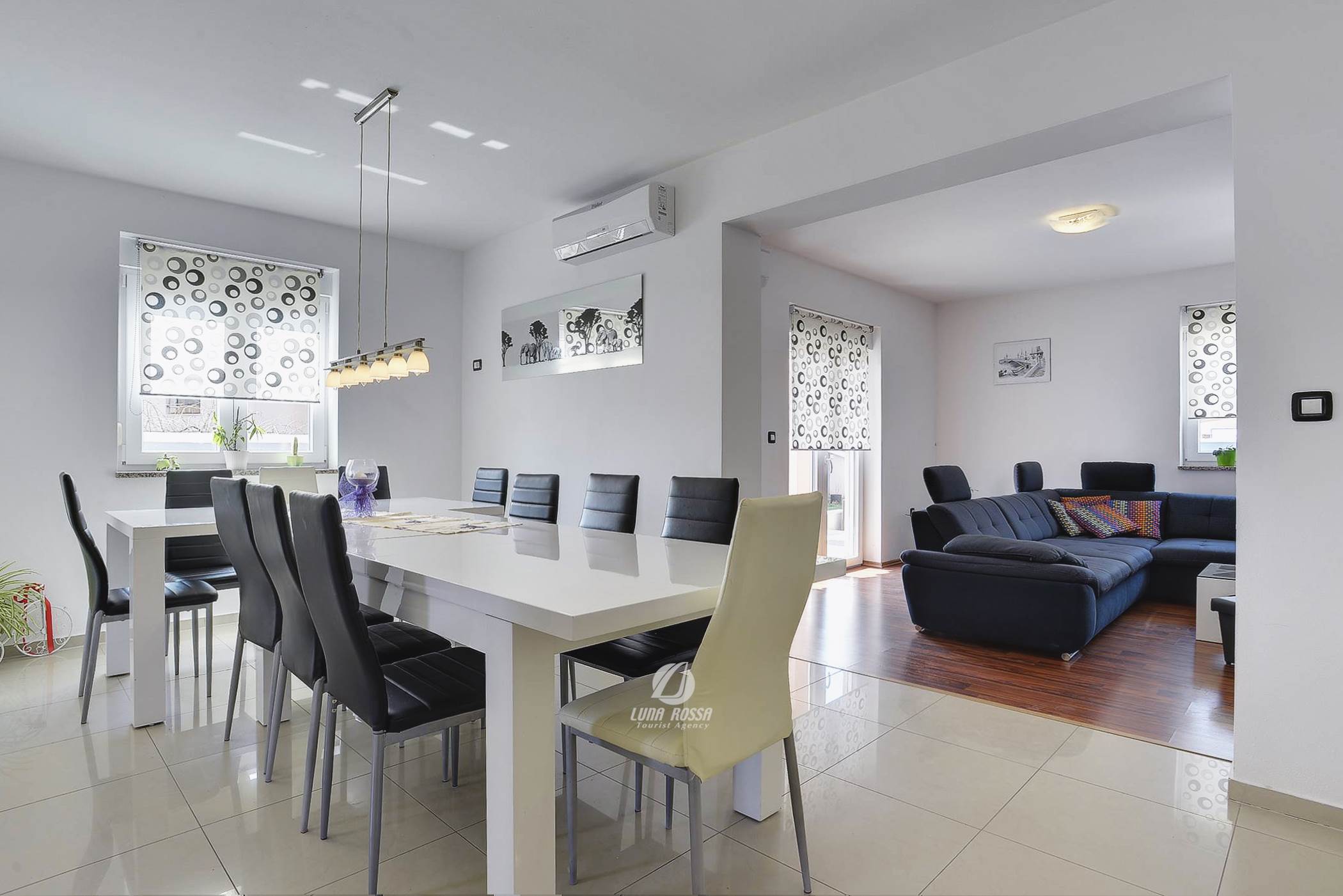 This modern Villa Pieron in Marčana has four bedrooms, each with its own bathroom. The courtyard is a haven with a swimming pool, terrace and covered terrace.