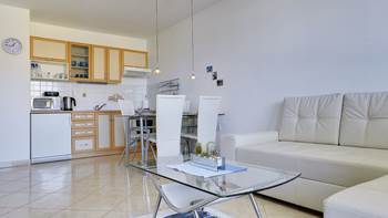 Komforan i prostran apartman za 2 do 4 osobe smješten na mirnoj rezidencijalnoj lokaciji u Ližnjanu. Apartman se sastoji od jedne spavaće sobe sa direktnim izlazom na balkon s pogledom na more. Dnevni dio i kuhinja su otvorenoga tipa, prevladavanju svijetle boje i elegantan dizajn. Natkriveni balkon idealno je mjesto za zajedničko druženje i opuštanje. Sve prostorije su klimatizirane te dostupan je pristup bežičnom internetu (WIFI). Rezervirajte svoj boravak već danas u ovom ukusno opremljenom apartmanu u Ližnjanu.