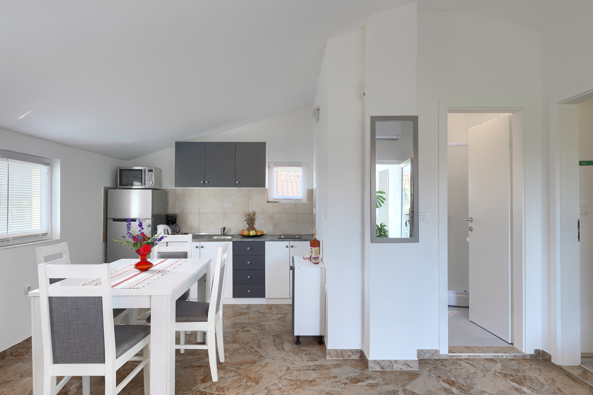 - dnevni boravak, blagovaonica i kuhinja u jednoj prostoriji