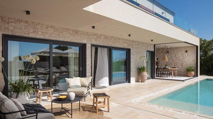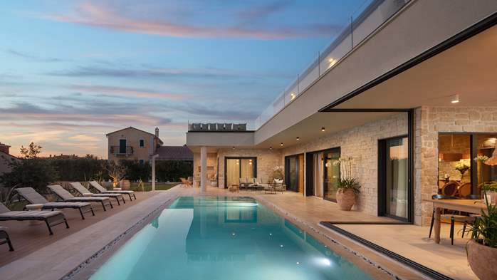 Očaravajuća vila Grande za 8osoba, nedaleko Poreča nudi razne sadržaje za odmor iz snova - bazen, jacuzzi, pikado, biljar, uređeni vrt!