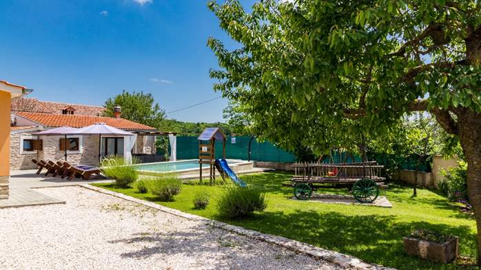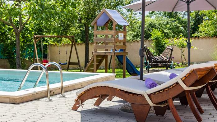 Apartman za 3 osobe s kamenim detaljima, bazen, dječje igralište