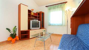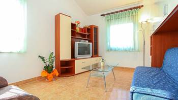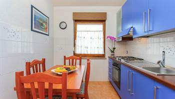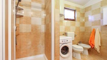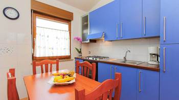 Vi presentiamo questa bella casa privata con due appartamenti a Medulin che offre alloggio per un totale di quattro persone. Entrambi gli appartamenti sono situati al piano terra e dispongono di accesso alla terrazza in comune, completamente arredata con barbecue. La casa è immersa nel verde - da un lato vi è un piccolo vigneto, e sull’altra parte si trova il vialetto pavimentato che conduce al terrazzo. Qui potete rilassarvi dallo stress della vita quotidiana circondati da aria fresca, in una splendida ambientazione in riva al mare.