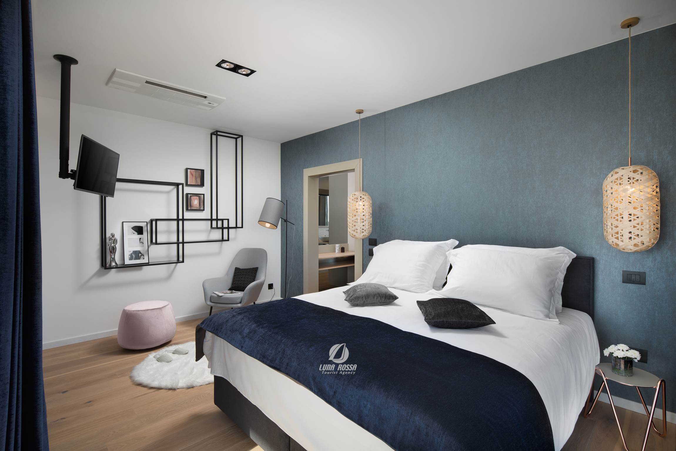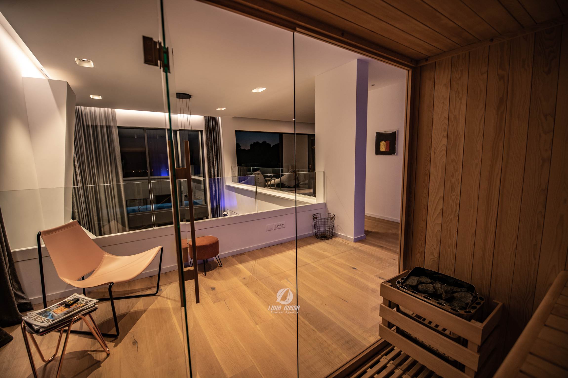 Villa PS Deluxe è una stupefacente casa a tre piani che si trova a Vintijan, non lontano da Pola. Questo magnifico edificio è situato su un prato recintato di 3700 m2 e offre molti contenuti che vi permetteranno di godervi una vacanza da sogno. Il cortile è dominato dalla piscina privata riscaldata con idromassaggio che è circondata da un bellissimo prato. A parte per prendere sole e nuotare in piscina, il vostro soggiorno in questa villa può essere anche di natura più attiva. Potete semplicemente andare in palestra, sauna finlandese o giocare a ping-pong e biliardo, o se preferite un diverso tipo di intrattenimento, c'è anche la Playstation 4 a vostra disposizione. Quando si parla di interni, va notato che la villa PS Deluxe dispone di 4 camere da letto ciascuna con il proprio bagno. Potrete anche trascorrere le vostre serate nell'elegante atmosfera del soggiorno o semplicemente godervi la splendida vista mare dal balcone al terzo piano. Oltre alla vista, questo grazioso balcone è unico perché ha una vasca idromassaggio ideale per il relax. Tutti gli amanti del vino possono sbirciare nella cantina di questa villa e godersi qualche goccia di vero vino istriano. Concedetevi una vacanza estiva in questa splendida villa e godetevi le ferie che rimarranno sicuramente nella vostra memoria per il resto della vostra vita!