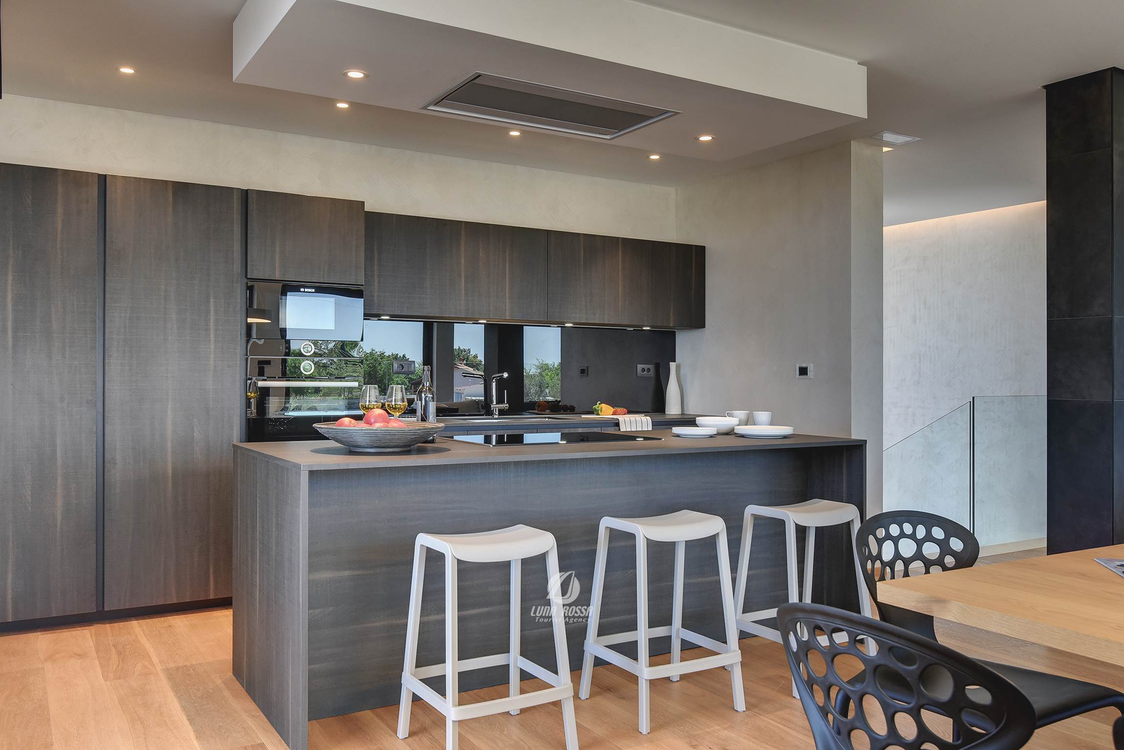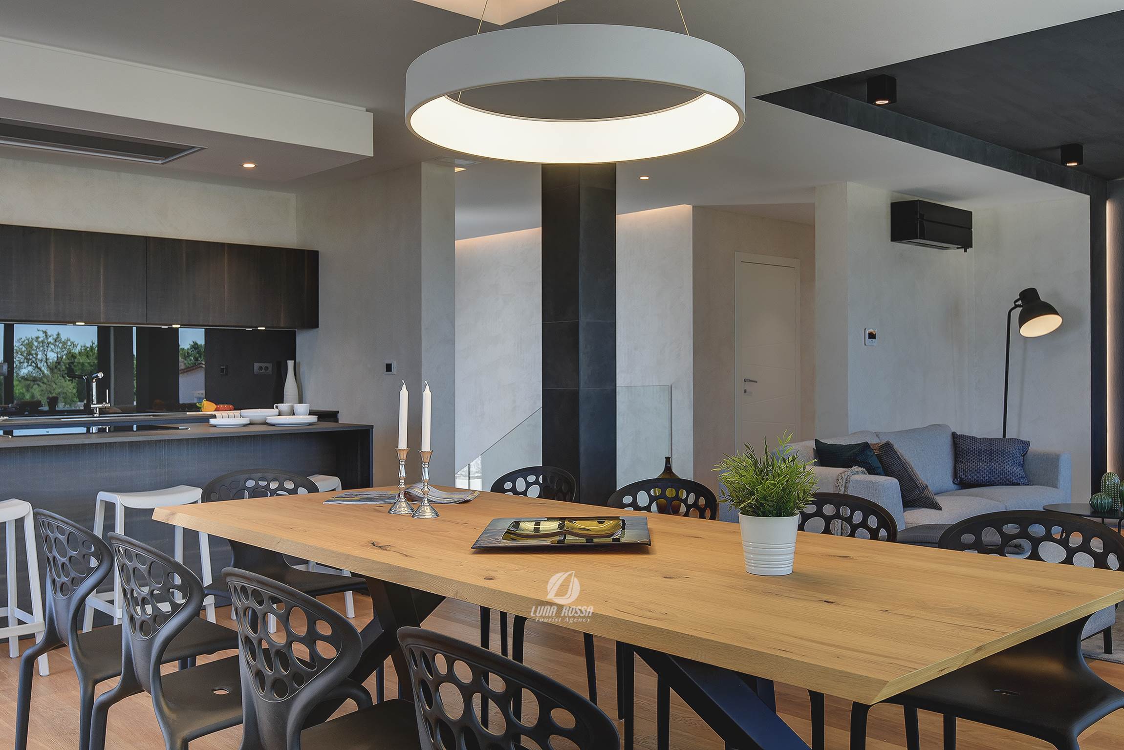 Moderna Villa Old Olive I per 12 persone, situata in una posizione tranquilla, a Salvela. La villa offre una piscina, ping pong, biliardo, WiFi.