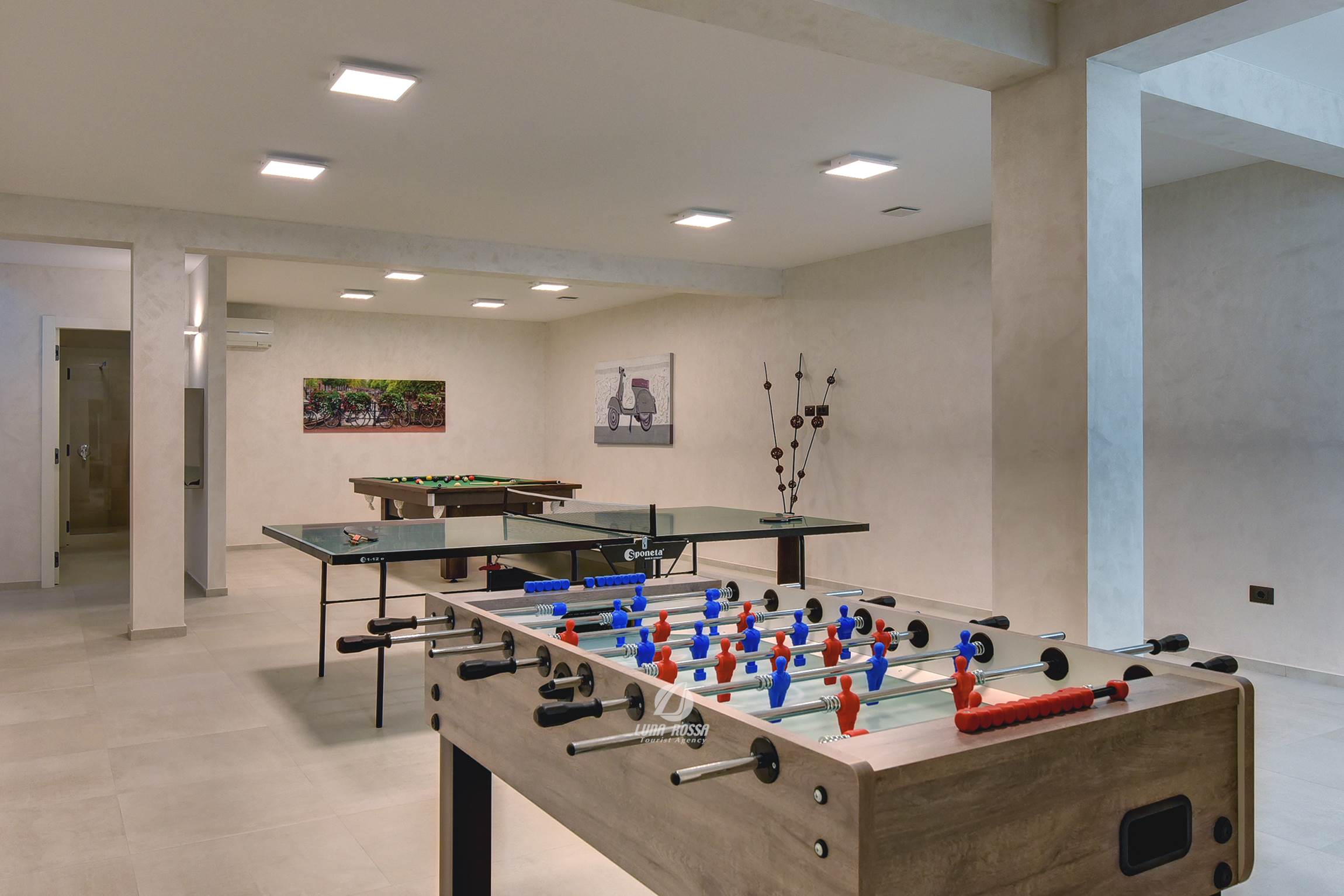 Villa Nirvana a Dignano per otto persone con piscina, sauna e ricchi impianti sportivi, ideale per il relax e il divertimento.